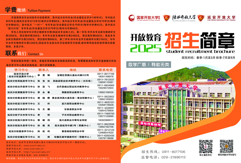 (延安電大)報名地點: 延安開放大學一樓招生處